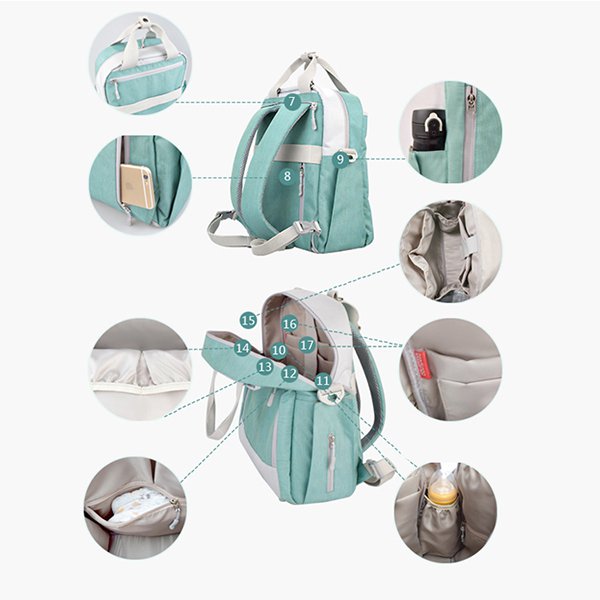 2. 尺寸為31*28*12cm,容量適中,可輕鬆容納寶寶的尿布、奶瓶等必需品。