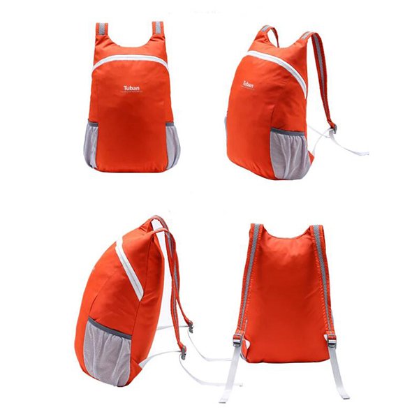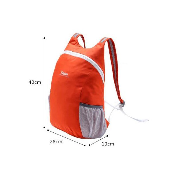 1. 拉鍊後背包採用防撕裂尼龍外層材質,內層為聚酯纖維,尺寸為40*28*10cm,重量僅100g,容量約18L,輕巧方便攜帶。
