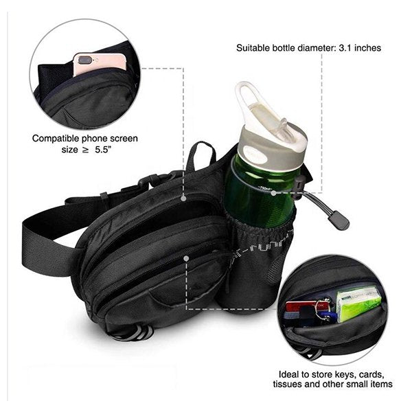 1. 尼龍飲料杯套腰包,材質輕便耐用,尺寸為25*7.6*17cm,重量僅180g,方便攜帶。