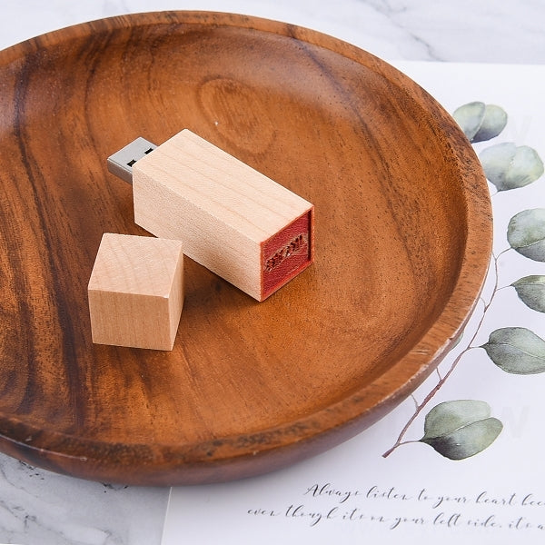 1. 簡約時尚的木製隨身碟,尺寸為19*19*61mm,方便隨身攜帶。包裝採用OPP袋包裝,展現專業形象。