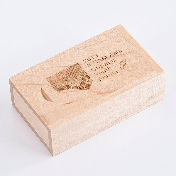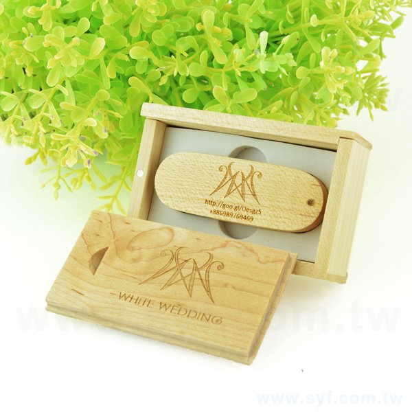 楓木質感推式木盒-隨身碟包裝盒-可雷射雕刻企業LOGO
