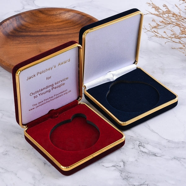 1. 金邊絨布盒尺寸為8*8*2.5cm,適合企業禮贈品展現尊貴品味。