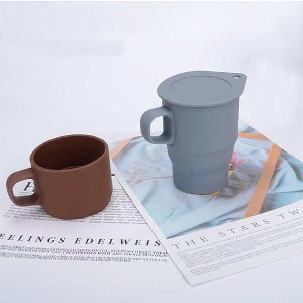 可摺疊矽膠馬克杯-附蓋子吸管-可客製化印刷LOGO