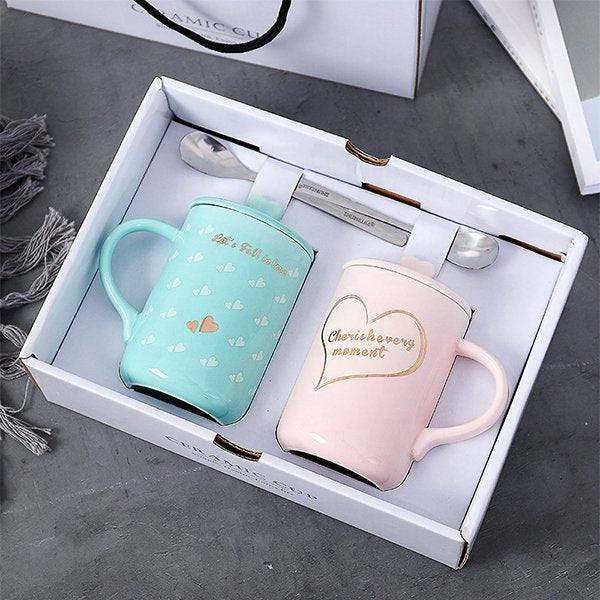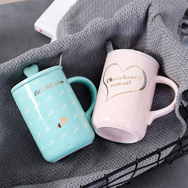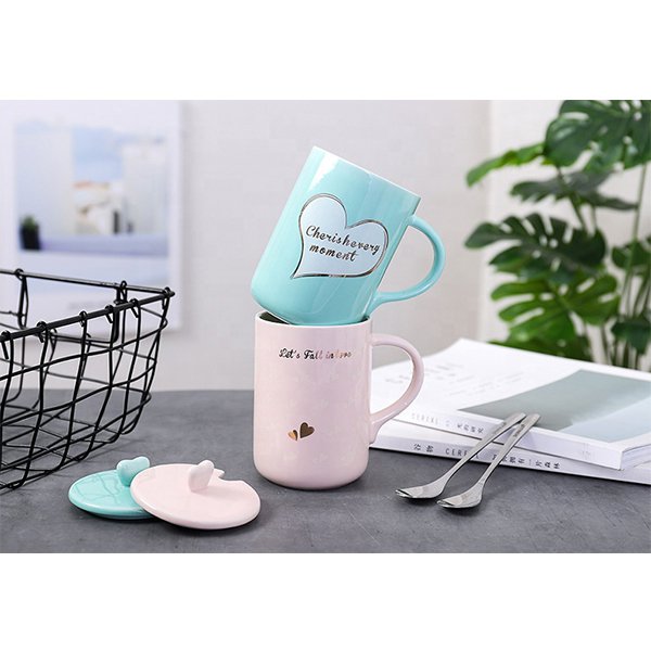 心型陶瓷馬克杯/對杯-附蓋子湯匙-可客製化印刷LOGO
