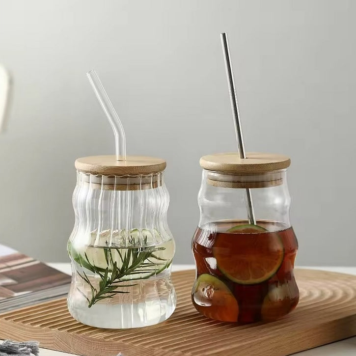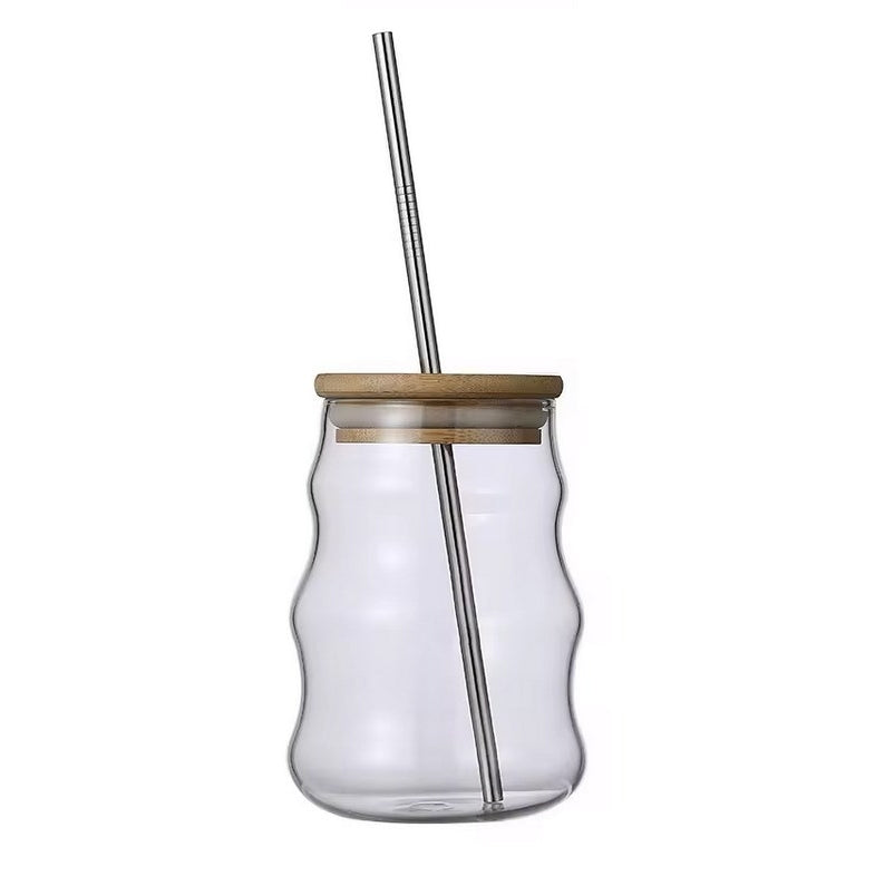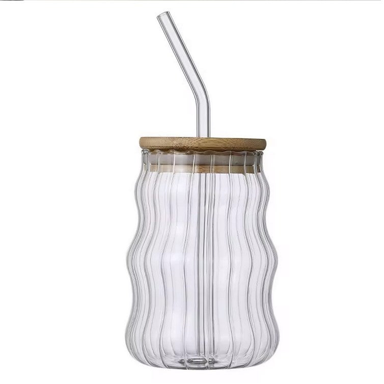 1. 500ml創意波紋造型玻璃水杯,配有吸管,時尚實用,適合家中或辦公室使用。容量大,讓您盡情享受咖啡的風味。材質安全無毒,健康享受。吸管和杯蓋設計貼心,方便使用。