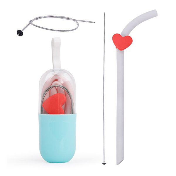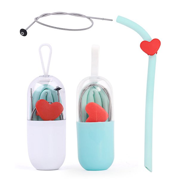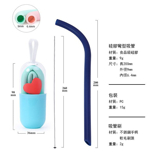 環保矽膠彎吸管2入組-PC盒-附愛心釦
