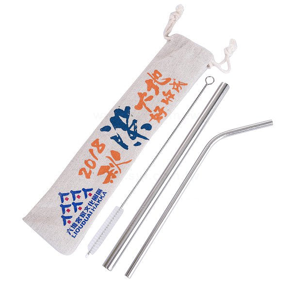 304不鏽鋼環保吸管組-彩色熱轉印麻布袋-可客製化印刷企業LOGO