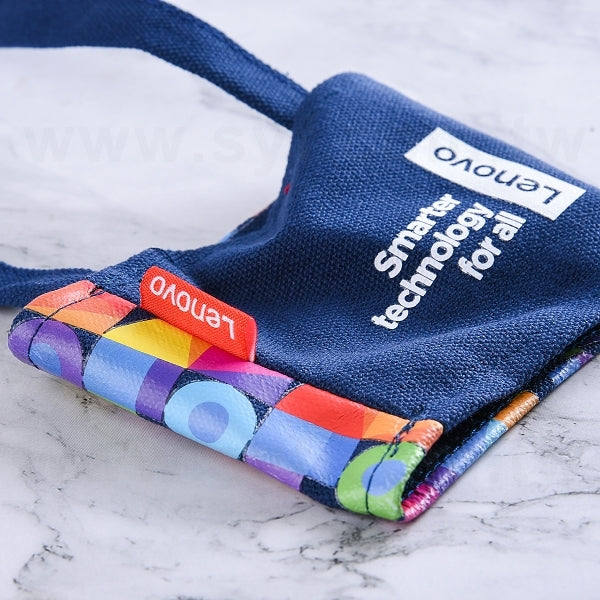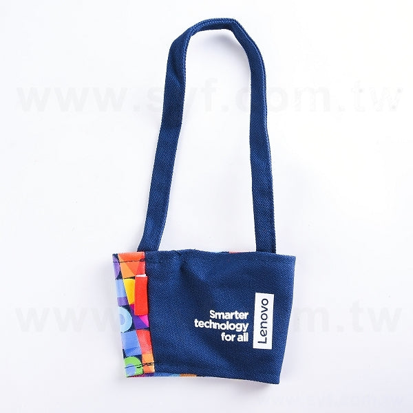1. 環保杯套尺寸為上寬13x下寬11x高8cm,提繩長40cm,可客製化印刷企業LOGO。