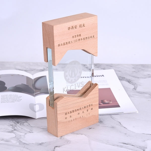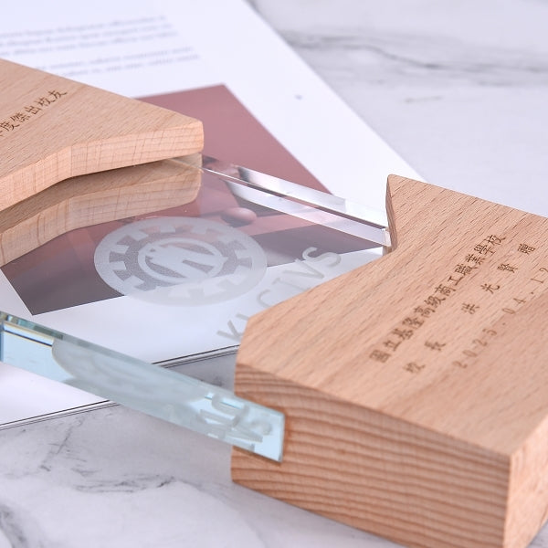 LOGO:雷雕木頭上下各一處+水晶雷雕一處
