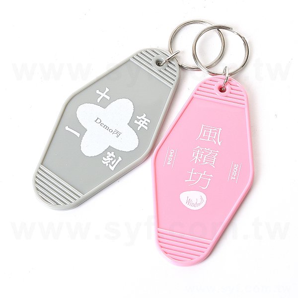 復古美式飯店鑰匙圈-菱形扁平PVC旅館鑰匙圈