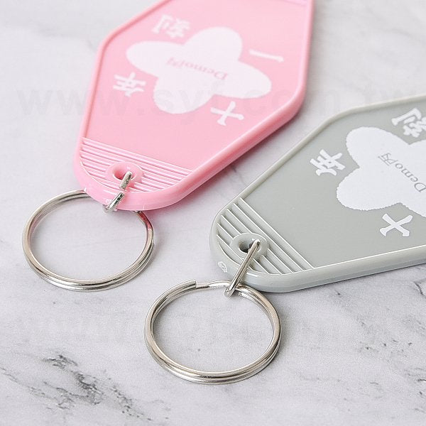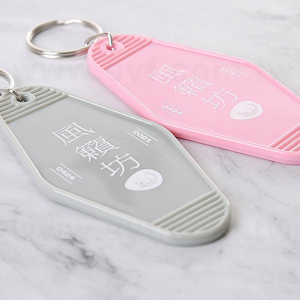 2. 菱形扁平PVC旅館鑰匙圈輕巧方便攜帶,商務旅行的好幫手。