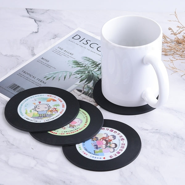 1. 創意黑膠杯墊,矽膠材質,防滑防水,適合辦公室使用。