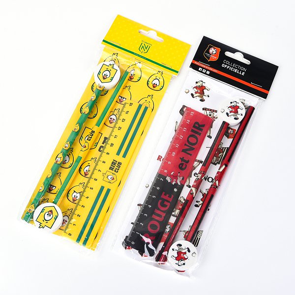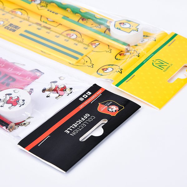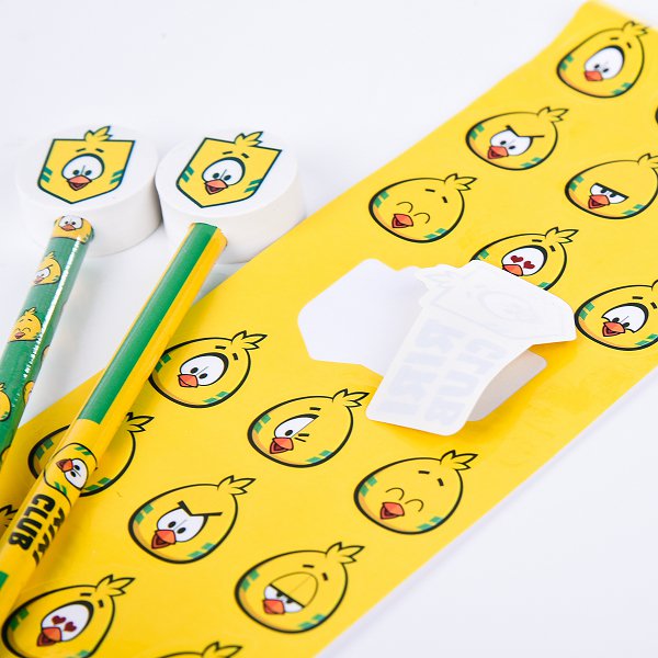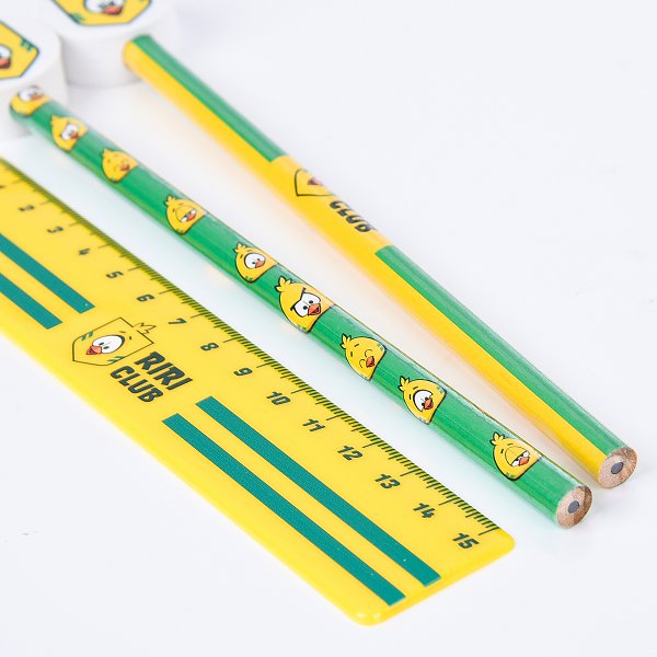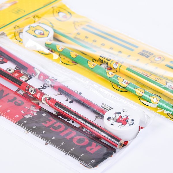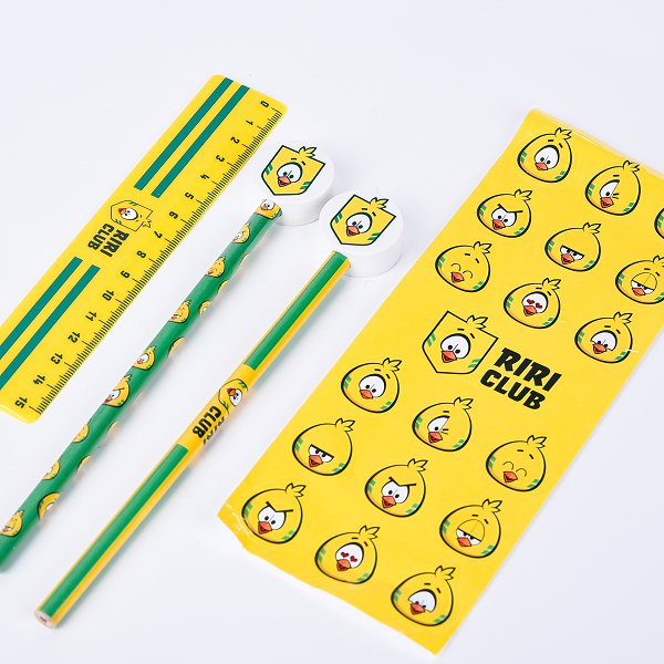 1. 文具組禮贈品包含鉛筆、橡皮擦和貼紙,尺寸細緻精美。