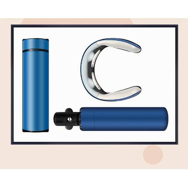 1. 商務禮盒組合,包含筋膜槍、頸椎按摩器、保溫杯、自動傘,滿足各種需求。