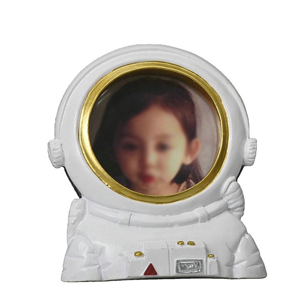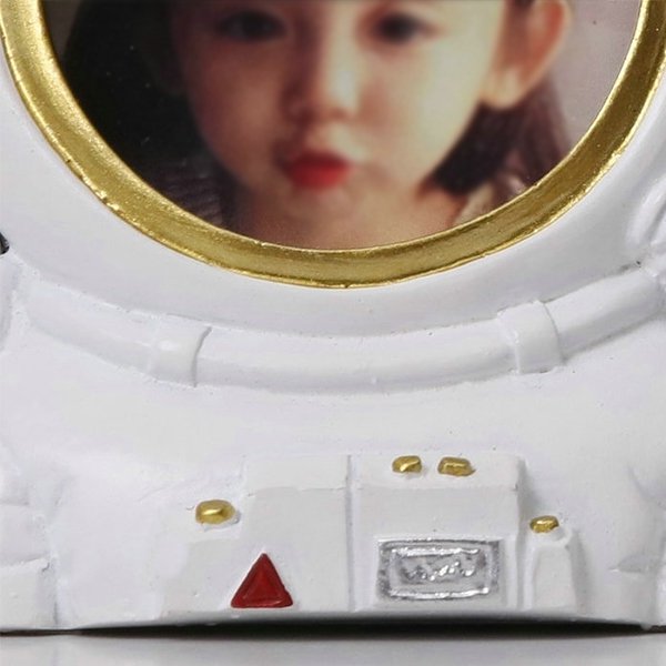 1. 太空人造型迷你相框,樹脂材質,尺寸為8.5*7.5*2.3cm,堅固耐用,保護相片不易受損。