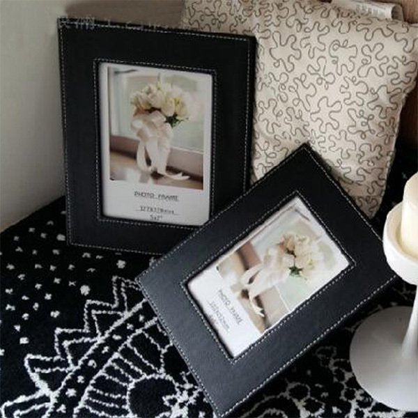 1. 白邊黑色PU皮革相框,材質高級PU革/玻璃製成,尺寸為17*21.5cm,簡約時尚設計,適合辦公室展示團隊合照。