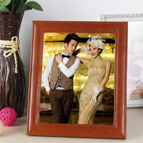1. 咖啡棕皮革大尺寸相框,採用高品質PU革和玻璃材質製成,尺寸為21*29.5cm,展示照片或文件更加清晰明亮。