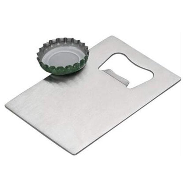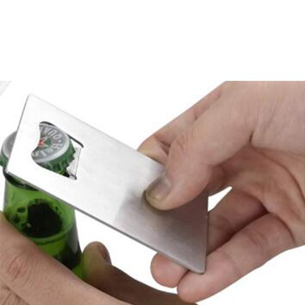1. 不鏽鋼信用卡開瓶器,材質堅固耐用,尺寸為85*55*1.5mm,方便攜帶使用。