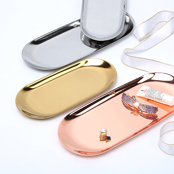 1. 時尚金屬置物盤,採用不銹鋼材質,簡約大方,展示品味。適合辦公室或客廳裝飾使用。