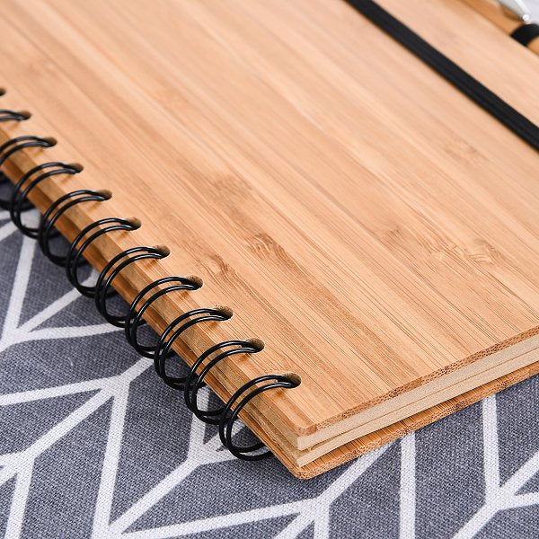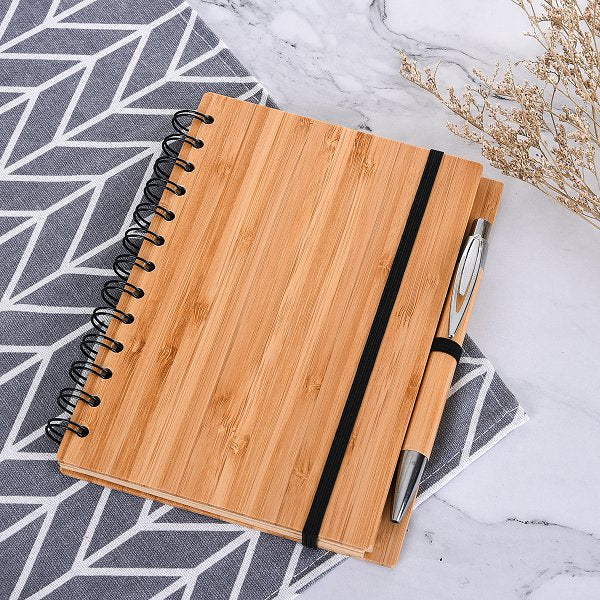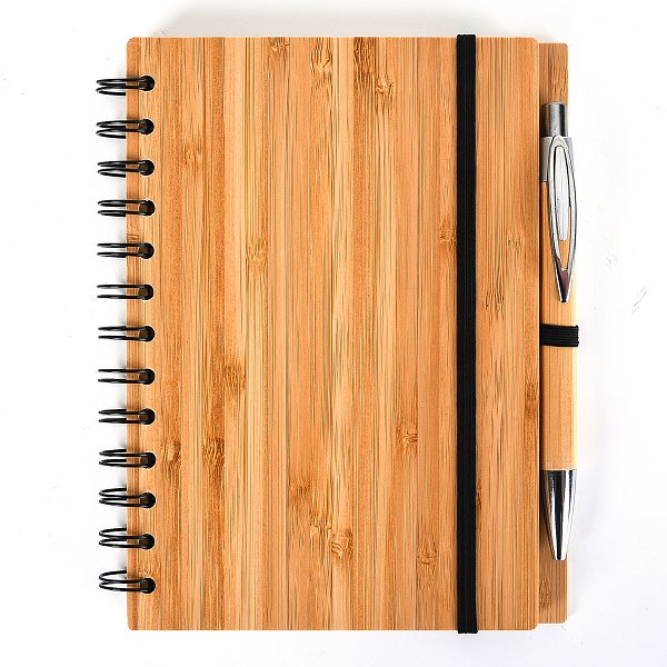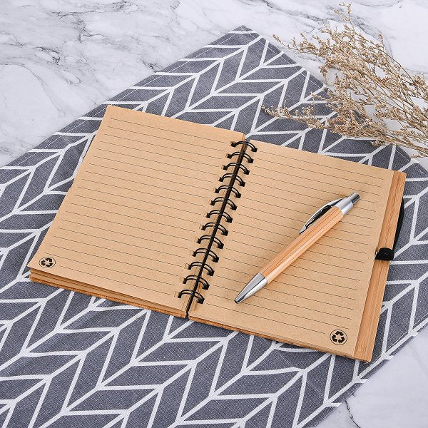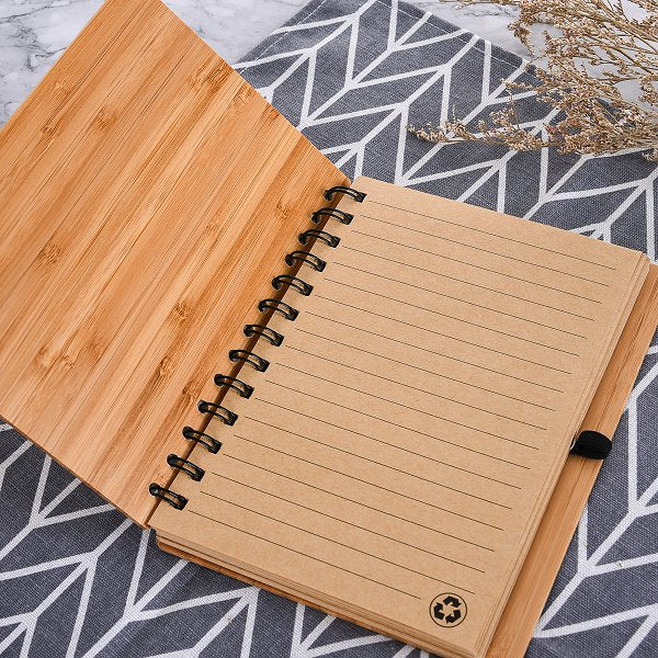 環裝筆記本-竹製左翻線圈記事本/附筆-可客製化內頁與Logo
