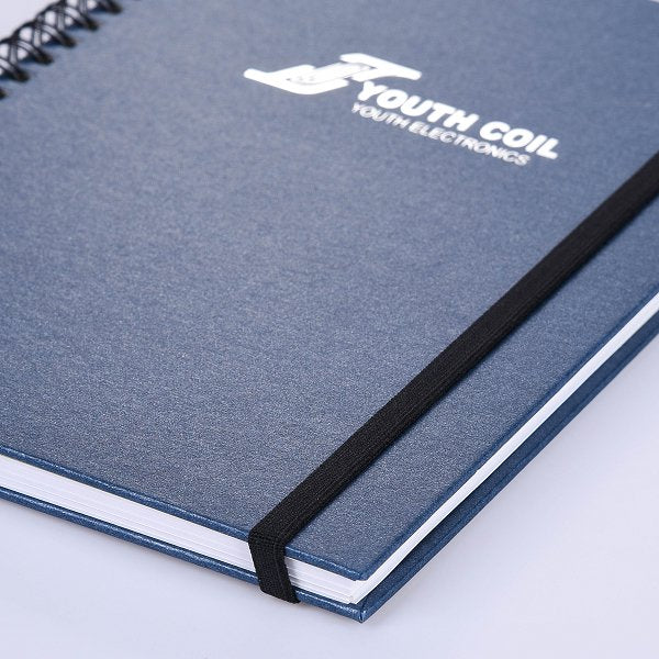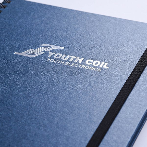 星彩紙燙銀筆記本-左翻橫線線圈記事本黑色鬆緊帶-可訂製內頁及客製化加印LOGO