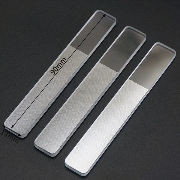 1. 玻璃修甲銼刀,尺寸為90x13x3mm,精緻小巧,方便攜帶。