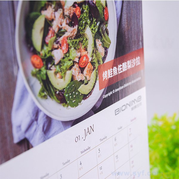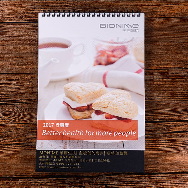 4. 桌曆尺寸為18x23cm,紙張採用高品質200P銅西,印刷方式為雙面彩色。
