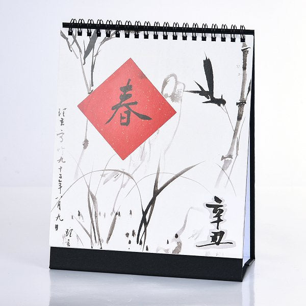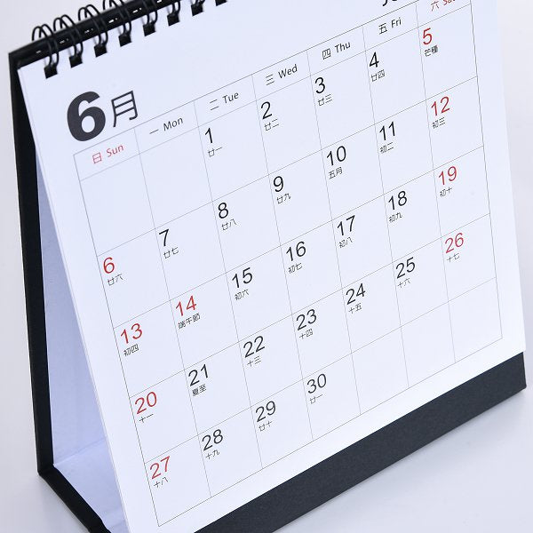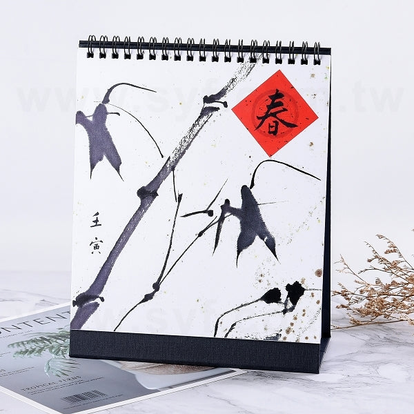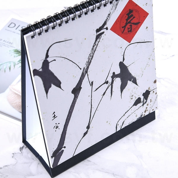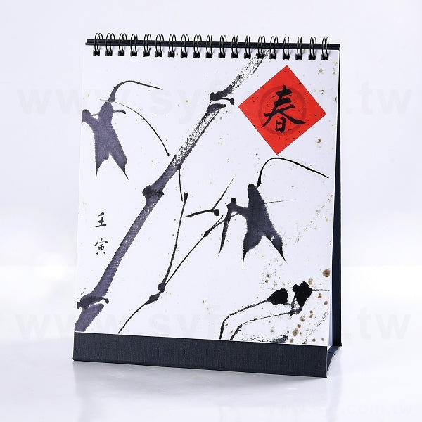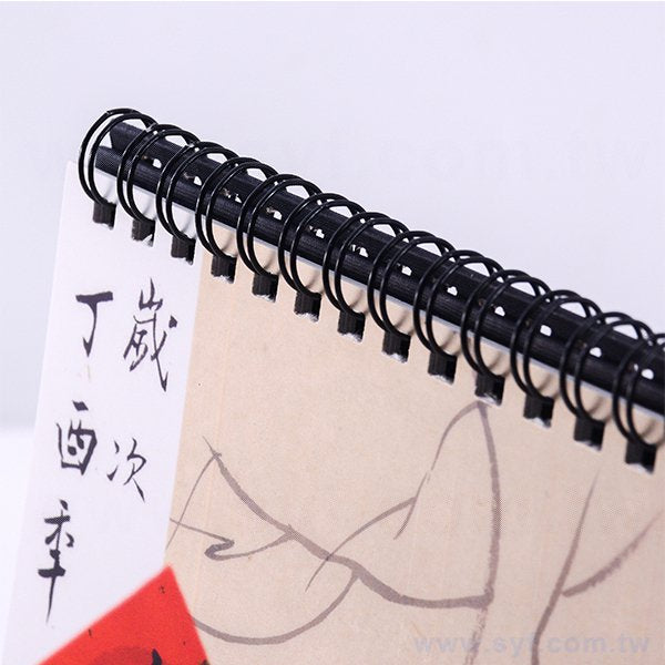 3. 桌曆裝訂方式為黑色雙線圈,底座樣式為黑色美術紙,包裝為OPP袋。