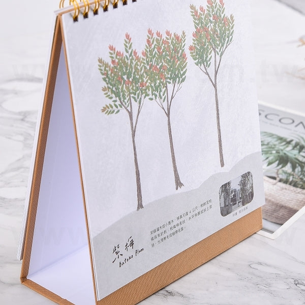 2. 桌曆底板尺寸為17.2x19.5cm,採用特白道林120磅紙張外紙,質感高貴,展現尊貴品質。
