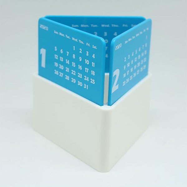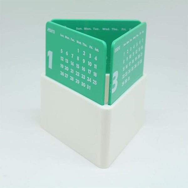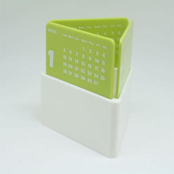 1. ABS塑膠製成的三角形筆筒桌曆,尺寸為10*10*10cm,堅固耐用,適合辦公室使用。