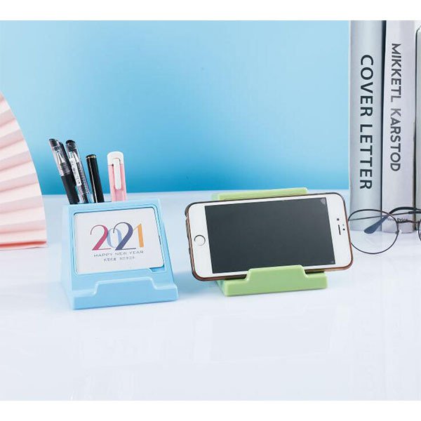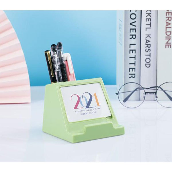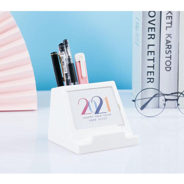 筆筒桌曆,結合手機架、筆筒和桌曆功能,方便實用。