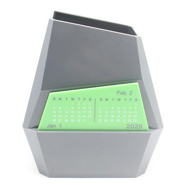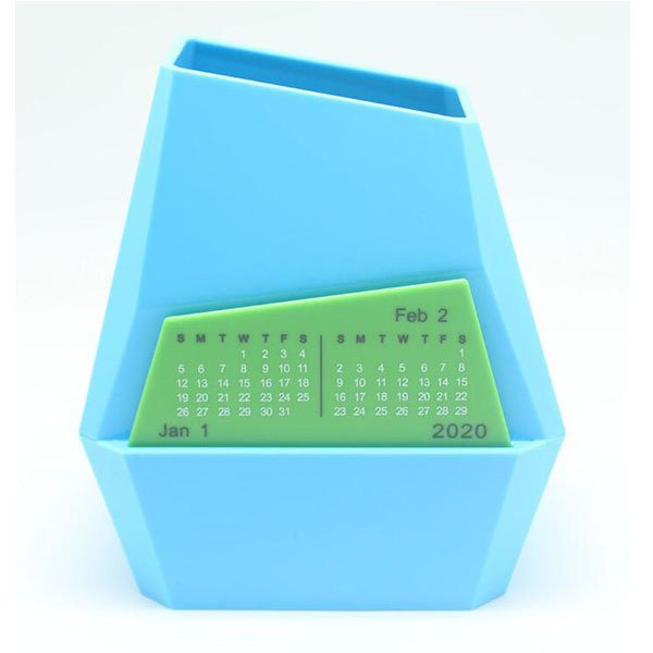1. 不規則塑膠筆筒桌曆,結合筆筒與桌曆功能,讓桌面整齊有序,提醒每天行程安排。