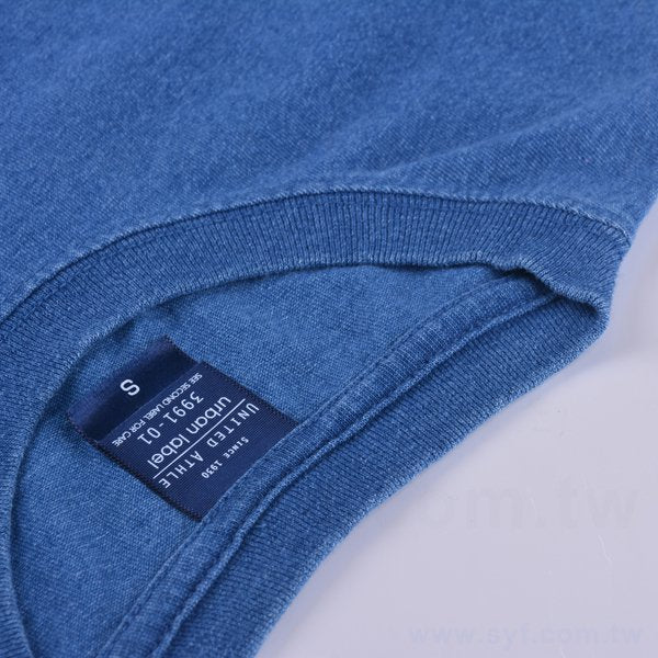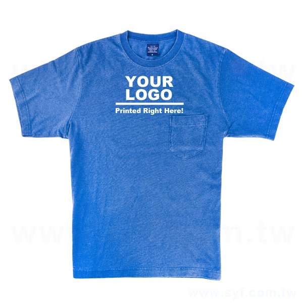 丹寧風短袖半精梳棉圓T-Shirt+口袋-可客製化衣服訂作/印刷企業LOGO或宣傳標語
