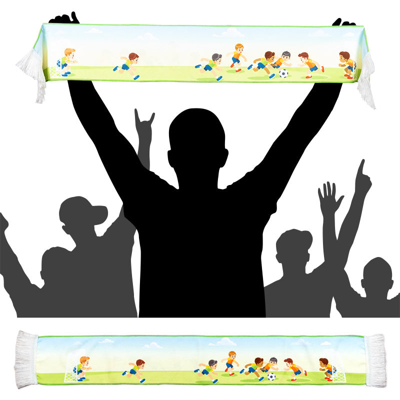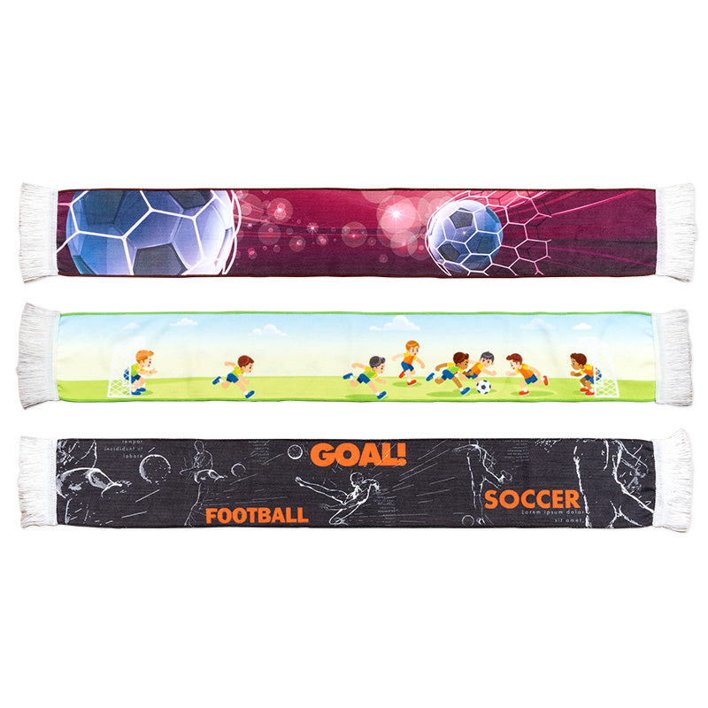 1. 超細纖維毛巾製成的流蘇圍巾,尺寸100x15cm,適合球迷使用。