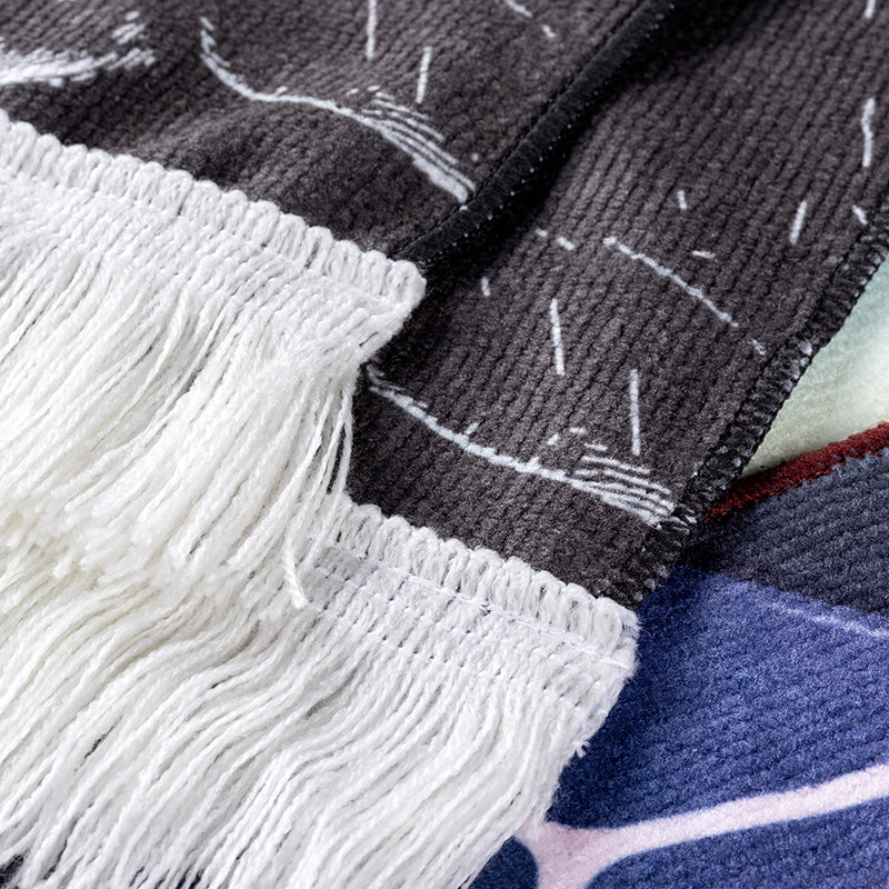 流蘇圍巾-100x15cm本白毛巾布-雙面彩色印刷
