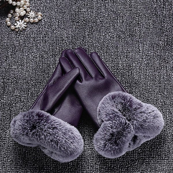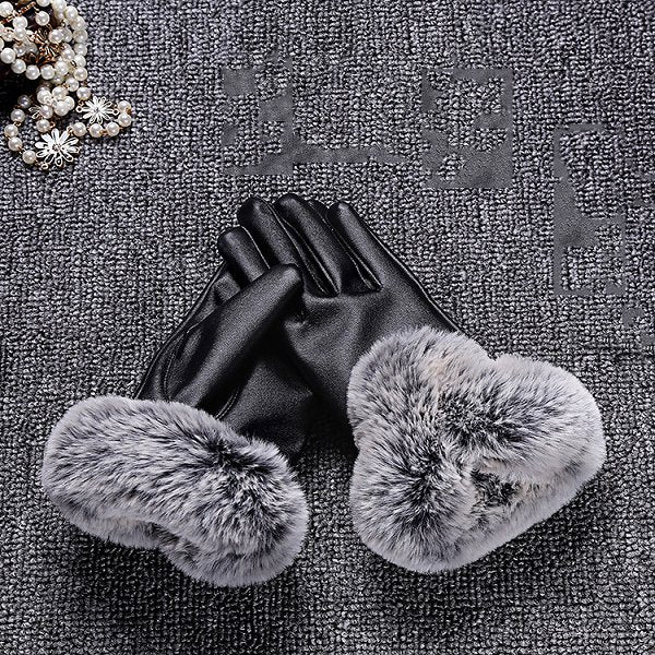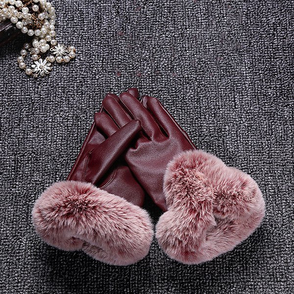 皮革手套-女用款/手挽絨毛-單面單色印刷