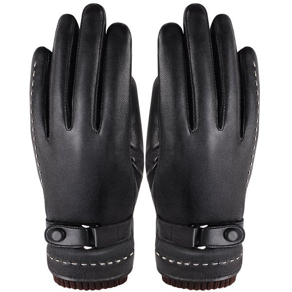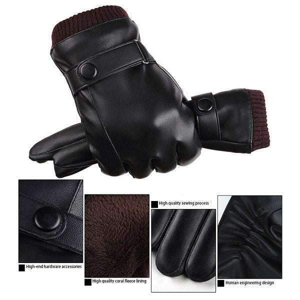 皮革皮扣手套-男用款/絨毛加厚-防風單色印刷