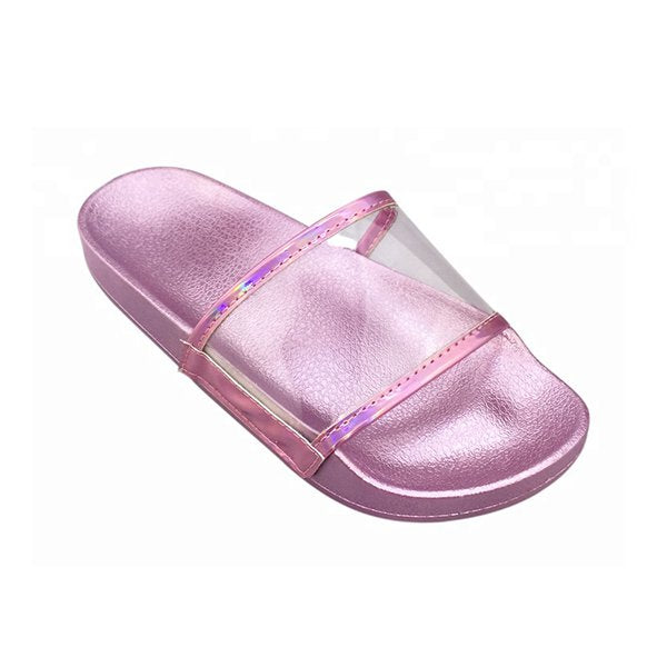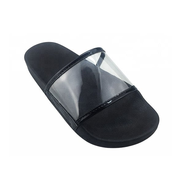1. 女款PVC寬版透明拖鞋,採用高品質PVC鞋面和PCU外底製成,提供舒適的穿著體驗。UV印刷技術使設計更獨特。