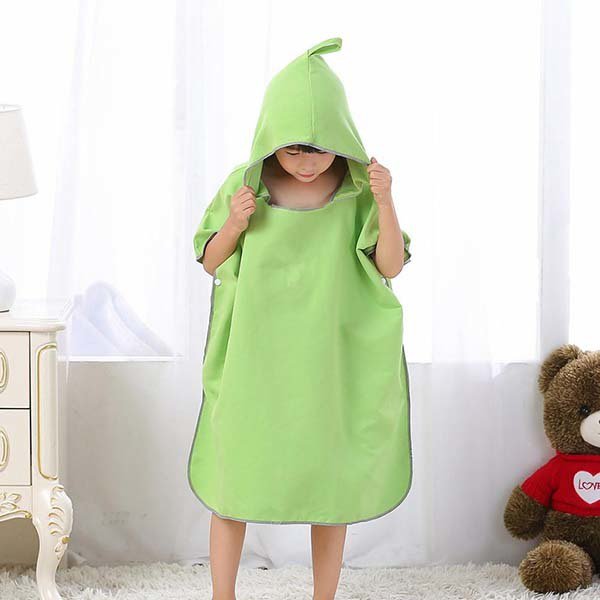 兒童款素面款斗篷沙灘毛巾衣-雙面絨連帽浴巾