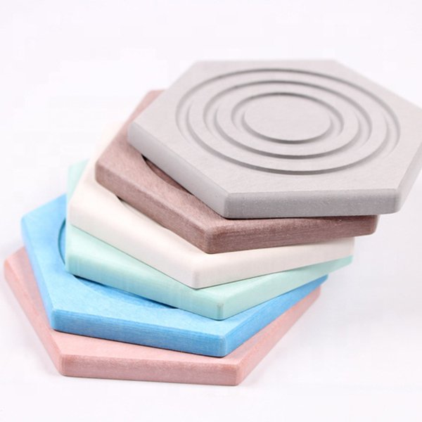 六角形3圈凹槽珪藻土吸水杯墊