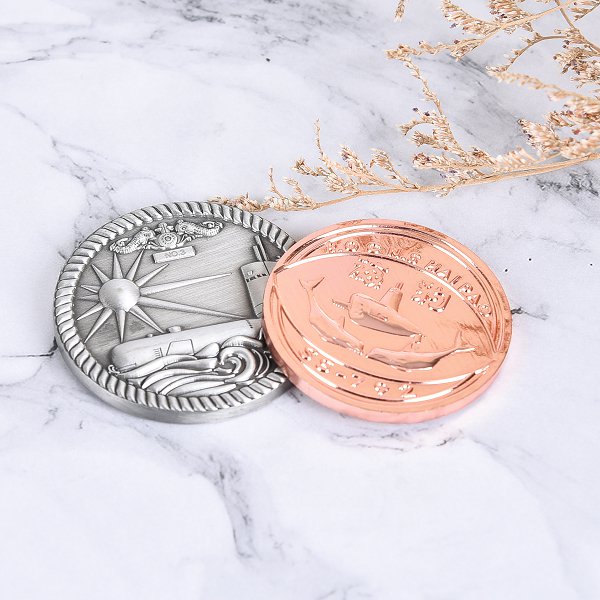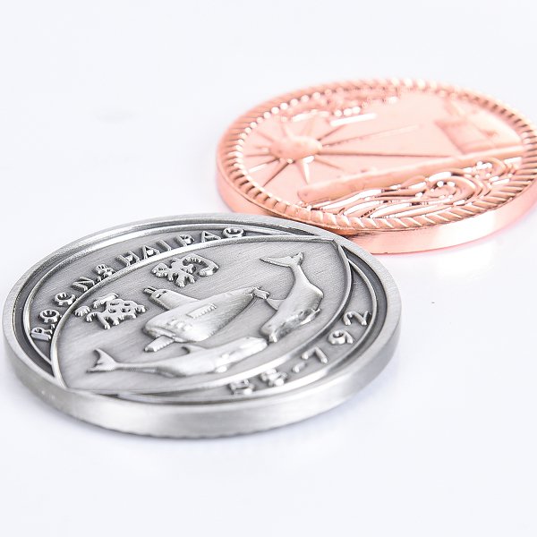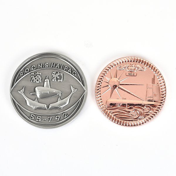 1. 金屬紀念幣直徑5cm,古銀色,銅材質,繩索紋邊,亮面幣邊,獨特設計,展現尊貴品味。