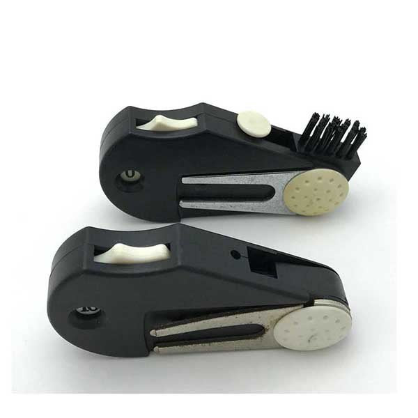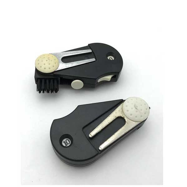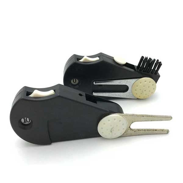 1. 塑膠五合一高爾夫配件組,結合塑膠、不銹鋼和尼龍材質,尺寸為9.4*4.7*2.3cm,重量輕巧53g。