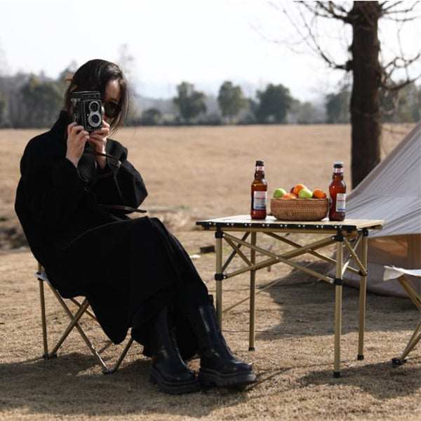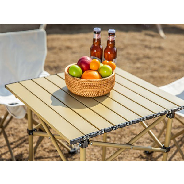 1. 適合戶外露營活動使用的文青露營鋁合金摺疊桌,尺寸輕巧方便攜帶,展開後提供寬敞桌面空間,讓您輕鬆享受露營樂趣。
