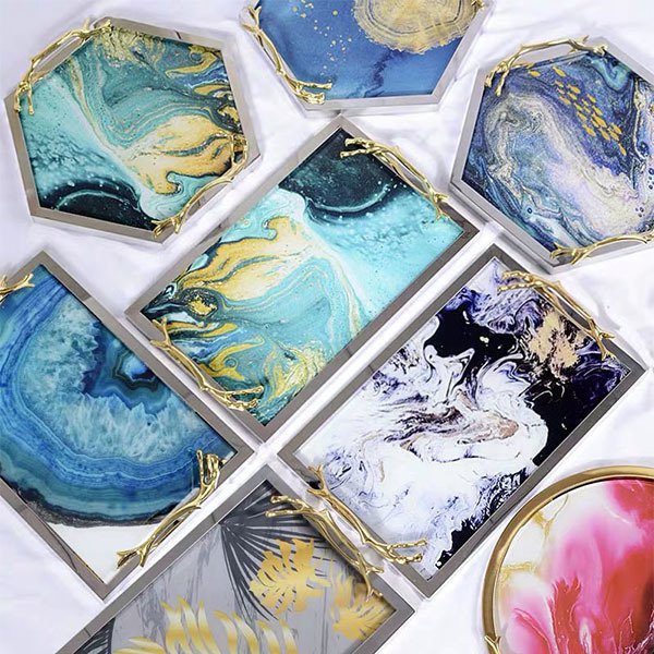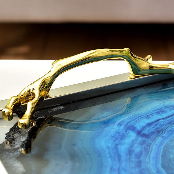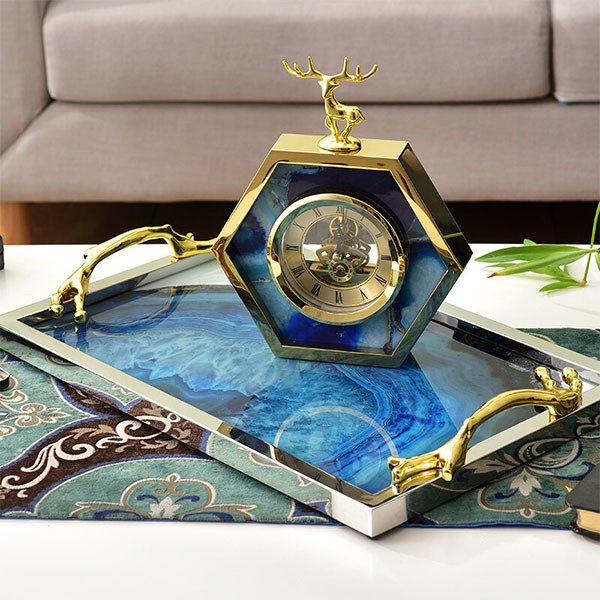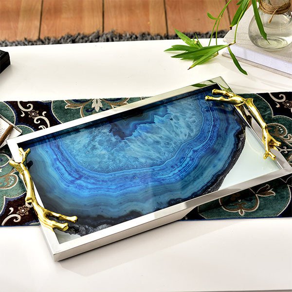 1. 時尚瑪瑙托盤結合金屬與瑪瑙材質,高貴典雅,尺寸為42*27*5cm,適合多種場景使用。