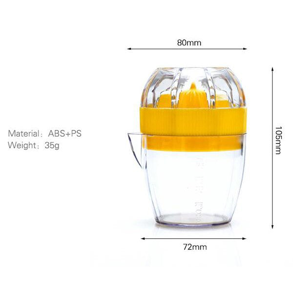 ABS塑料材質手動榨汁機,尺寸為105x80x72mm,重量輕巧35g,方便攜帶使用。