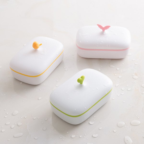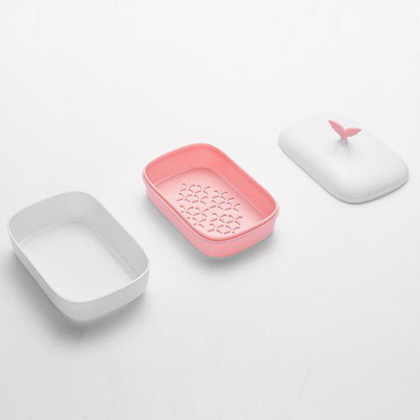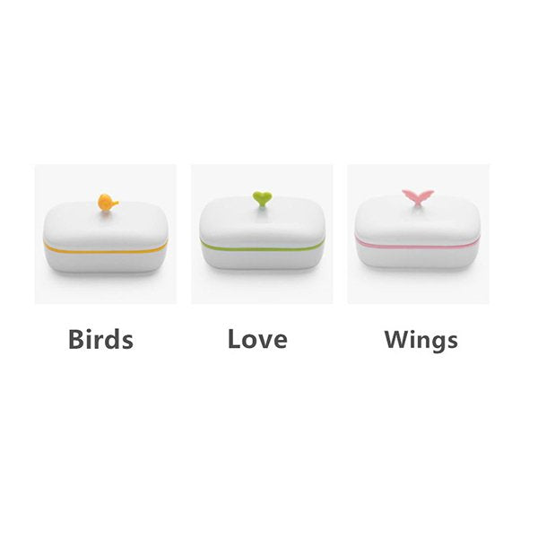 帶蓋款雙層塑料肥皂盒-長方形-小鳥/愛心/翅膀造型
