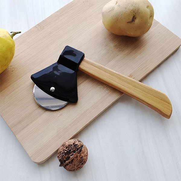 1. 斧頭造型木製提把披薩刀,獨特造型設計,讓用餐增添樂趣。