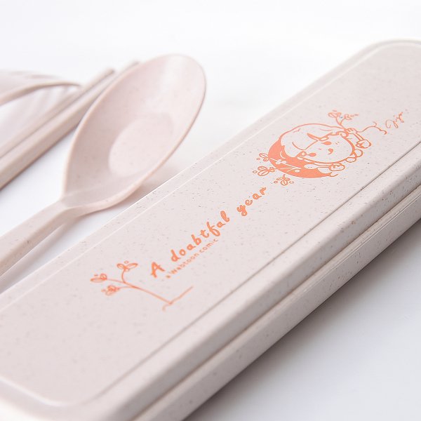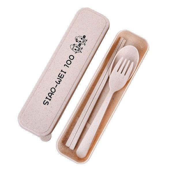 - 小麥桔梗餐具3件組,可製化企業Logo。