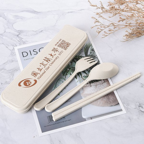 - 小麥桔梗餐具3件組,適合學校專區使用,方便攜帶。