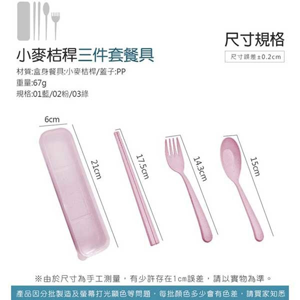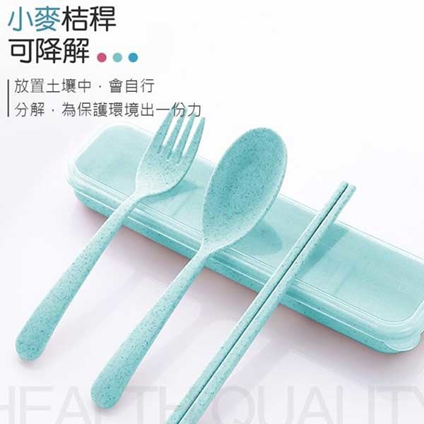 - 小麥桔梗餐具3件組,環保材質小麥秸稈製成,輕巧方便攜帶,適合辦公室、學校或戶外野餐使用。